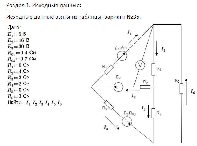 Раздел 7. Определение показания вольтметра, указанного в исходной схеме