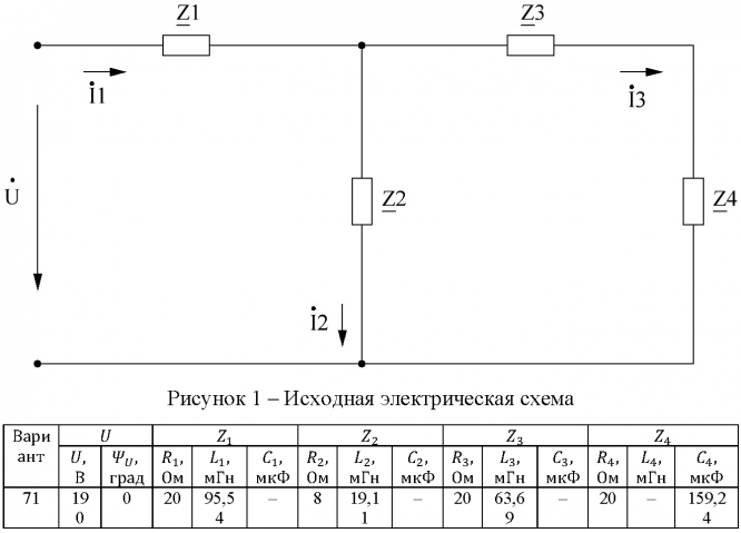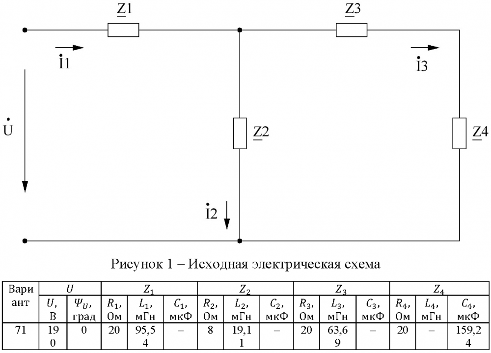 Задание из методических указаний: "Волченсков В.И. ВЫПОЛНЕНИЕ ДОМАШНЕГО ЗАДАНИЯ №2 ПО КУРСУ "ЭЛЕКТРОТЕХНИКА И ЭЛЕКТРОНИКА" (ТЕМА "РАСЧЕТ ЛИНЕЙНЫХ ЦЕПЕЙ СИНУСОИДАЛЬНОГО ТОКА")" - Москва, 2011.