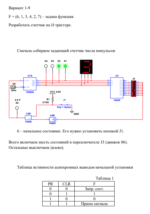 ДЗ 2: Проектирование синхронного счётчика с произвольным порядком счёта (6, 1, 3, 4, 2, 7) вариант 9