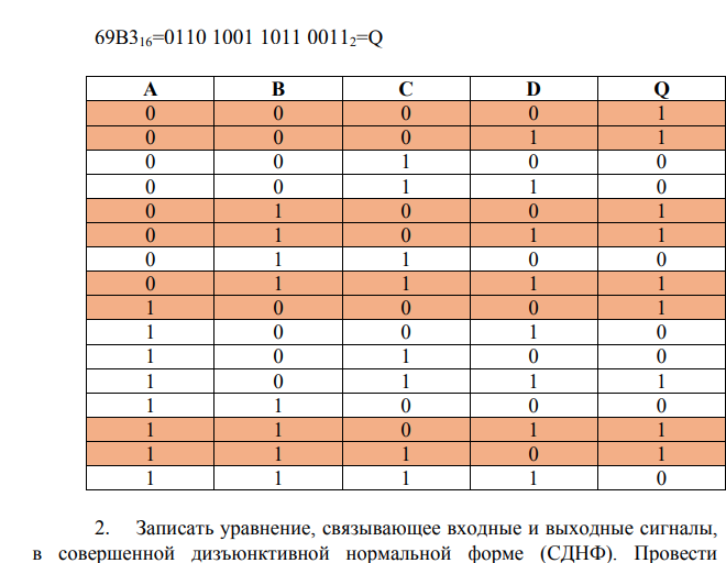 1. Составить таблицу истинности для логической функции с четырьмя логическими переменными и одной выходной функцией для своего варианта.