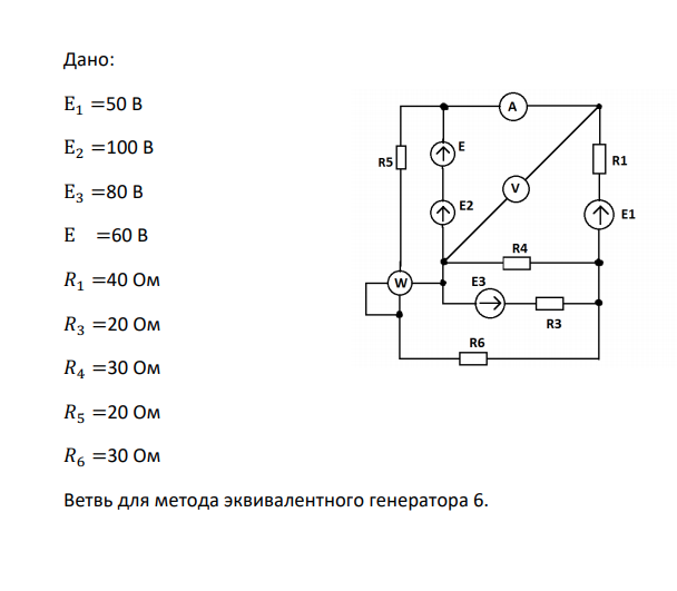 Дано: Е" =50 B Е$ =100 B Е% =80 B Е =60 B =40 Oм =20 Ом =30 Ом( =20 Ом =30 Ом Ветвь для метода эквивалентного генератора 6.