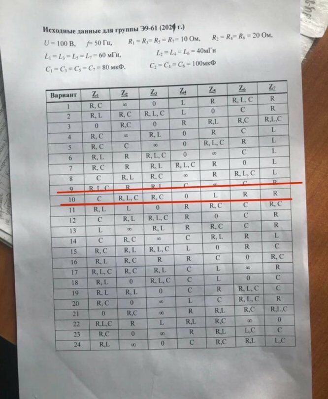 ДЗ 2: Расчет электрической цепи переменного тока. Вариант 10 вариант 10