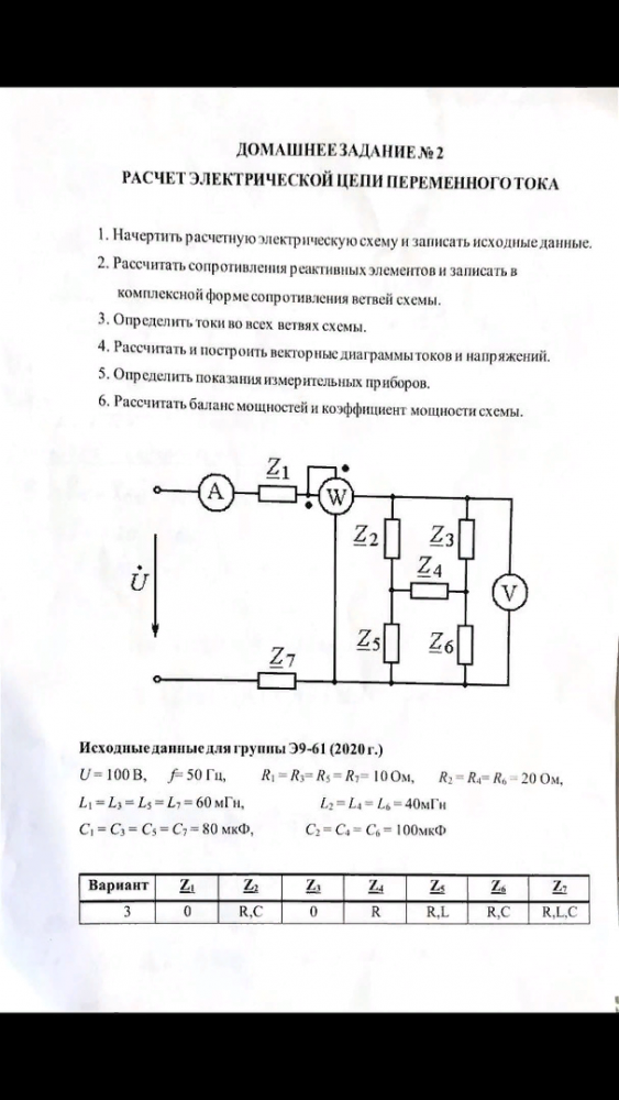 ДЗ 2: ДЗ№2 "Расчет электрической цепи переменного тока" вариант 3