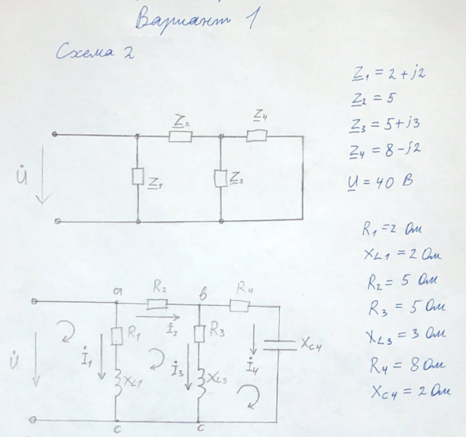 ДЗ 2: Вариант 1 - ДЗ 2 - Расчет линейных цепей синусоидального тока - схема 2 вариант 1
