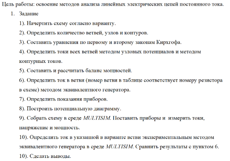 Тема: "Расчет сложных линейных цепей постоянного тока"