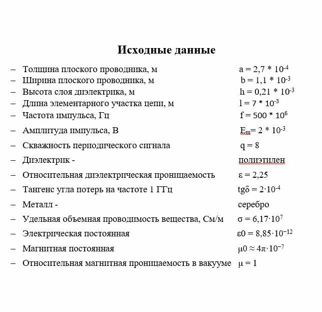 Исследование однородной линии передачи с распределенными параметрами - Вариант 1