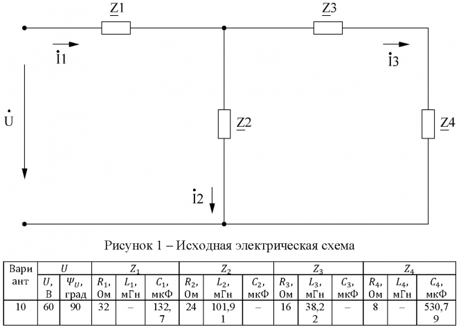Задание из методических указаний: "Волченсков В.И. ВЫПОЛНЕНИЕ ДОМАШНЕГО ЗАДАНИЯ №2 ПО КУРСУ "ЭЛЕКТРОТЕХНИКА И ЭЛЕКТРОНИКА" (ТЕМА "РАСЧЕТ ЛИНЕЙНЫХ ЦЕПЕЙ СИНУСОИДАЛЬНОГО ТОКА")" - Москва, 2011.