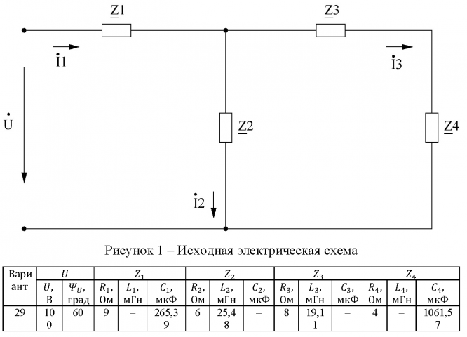 Задание из методических указаний: "Волченсков В.И. ВЫПОЛНЕНИЕ ДОМАШНЕГО ЗАДАНИЯ №2 ПО КУРСУ "ЭЛЕКТРОТЕХНИКА И ЭЛЕКТРОНИКА" (ТЕМА "РАСЧЕТ ЛИНЕЙНЫХ ЦЕПЕЙ СИНУСОИДАЛЬНОГО ТОКА")" - Москва, 2011.