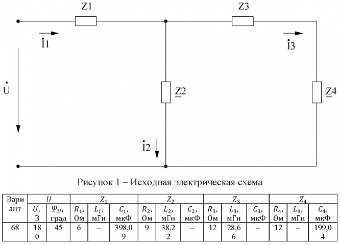 Задание из методических указаний: "Волченсков В.И. ВЫПОЛНЕНИЕ ДОМАШНЕГО ЗАДАНИЯ №2 ПО КУРСУ "ЭЛЕКТРОТЕХНИКА И ЭЛЕКТРОНИКА" (ТЕМА "РАСЧЕТ ЛИНЕЙНЫХ ЦЕПЕЙ СИНУСОИДАЛЬНОГО ТОКА")" - Москва, 2011.
