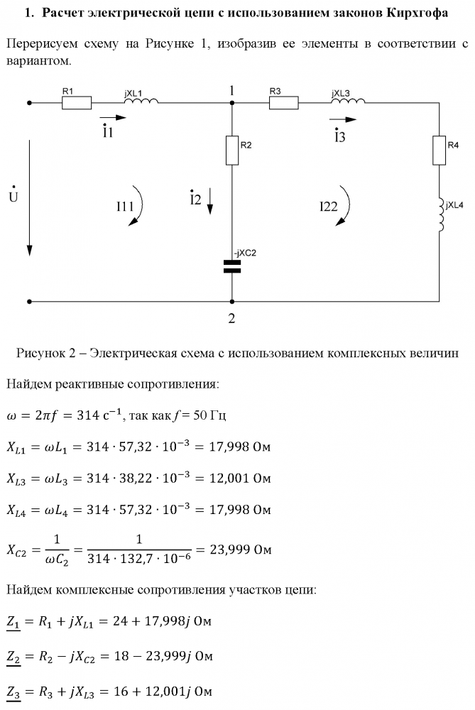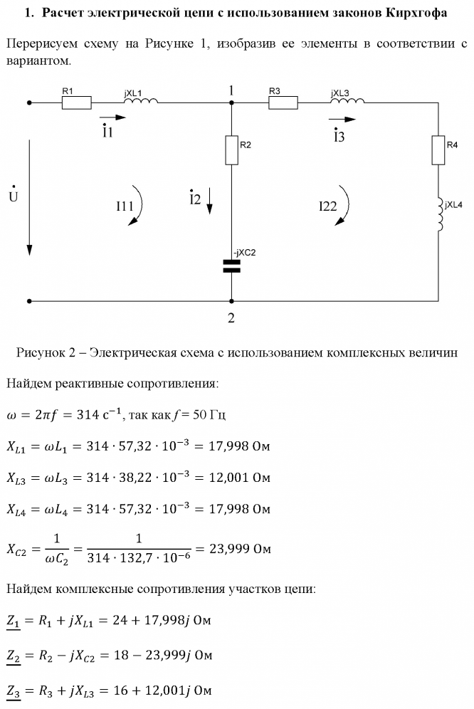 1. В соответствии с номером варианта домашнего задания нарисовать подробную схему с указанием отдельных элементов (R, L, С) и выписать исходные числовые данные из табл. П1, приведенной в приложении 1 методических указаний.2. Используя символический метод, для исходной схемы (рис. П1 приложения 2) составить систему уравнений по законам Кирхгофа, подставить в нее числовые значения, соответствующие рассматриваемому варианту задания, и, используя компьютер, определить все токи в ветвях схемы.