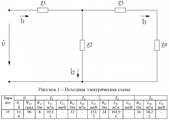 Задание из методических указаний: "Волченсков В.И. ВЫПОЛНЕНИЕ ДОМАШНЕГО ЗАДАНИЯ №2 ПО КУРСУ "ЭЛЕКТРОТЕХНИКА И ЭЛЕКТРОНИКА" (ТЕМА "РАСЧЕТ ЛИНЕЙНЫХ ЦЕПЕЙ СИНУСОИДАЛЬНОГО ТОКА")" - Москва, 2011.