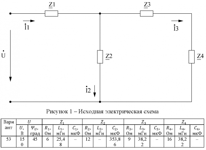 Задание из методических указаний: "Волченсков В.И. ВЫПОЛНЕНИЕ ДОМАШНЕГО ЗАДАНИЯ №2 ПО КУРСУ "ЭЛЕКТРОТЕХНИКА И ЭЛЕКТРОНИКА" (ТЕМА "РАСЧЕТ ЛИНЕЙНЫХ ЦЕПЕЙ СИНУСОИДАЛЬНОГО ТОКА")" - Москва, 2011.