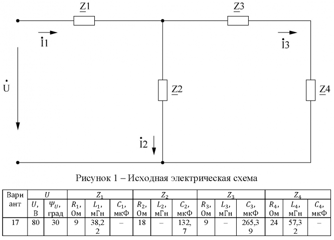 Задание из методических указаний: "Волченсков В.И. ВЫПОЛНЕНИЕ ДОМАШНЕГО ЗАДАНИЯ №2 ПО КУРСУ "ЭЛЕКТРОТЕХНИКА И ЭЛЕКТРОНИКА" (ТЕМА "РАСЧЕТ ЛИНЕЙНЫХ ЦЕПЕЙ СИНУСОИДАЛЬНОГО ТОКА")" - Москва, 2011.
