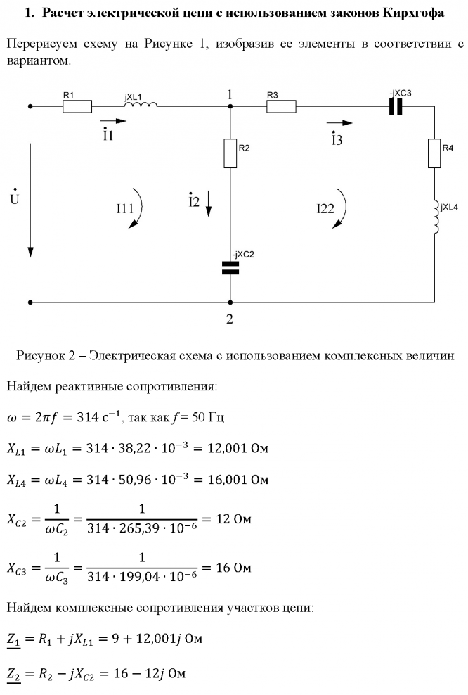 1. В соответствии с номером варианта домашнего задания нарисовать подробную схему с указанием отдельных элементов (R, L, С) и выписать исходные числовые данные из табл. П1, приведенной в приложении 1 методических указаний.2. Используя символический метод, для исходной схемы (рис. П1 приложения 2) составить систему уравнений по законам Кирхгофа, подставить в нее числовые значения, соответствующие рассматриваемому варианту задания, и, используя компьютер, определить все токи в ветвях схемы.