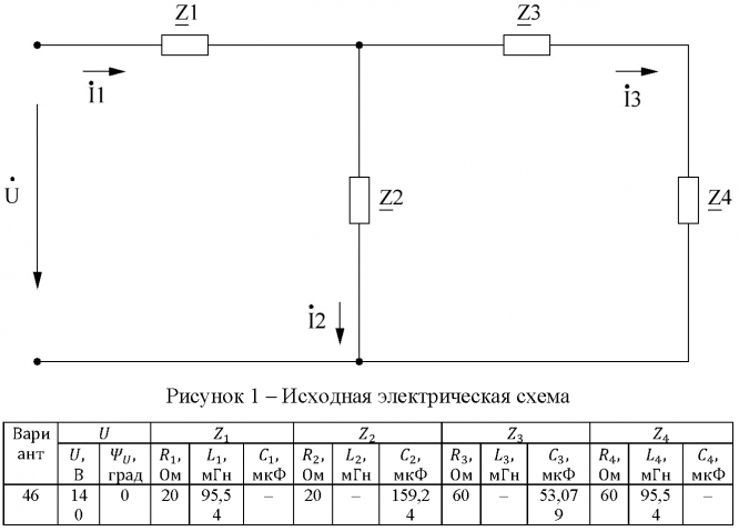 Задание из методических указаний: "Волченсков В.И. ВЫПОЛНЕНИЕ ДОМАШНЕГО ЗАДАНИЯ №2 ПО КУРСУ "ЭЛЕКТРОТЕХНИКА И ЭЛЕКТРОНИКА" (ТЕМА "РАСЧЕТ ЛИНЕЙНЫХ ЦЕПЕЙ СИНУСОИДАЛЬНОГО ТОКА")" - Москва, 2011.