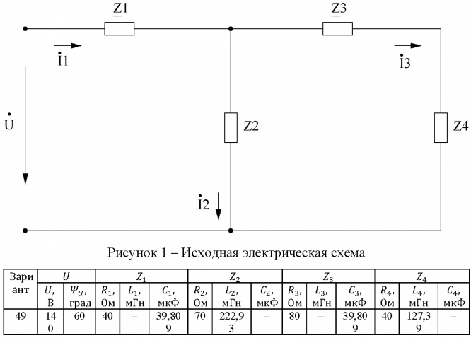Задание из методических указаний: "Волченсков В.И. ВЫПОЛНЕНИЕ ДОМАШНЕГО ЗАДАНИЯ №2 ПО КУРСУ "ЭЛЕКТРОТЕХНИКА И ЭЛЕКТРОНИКА" (ТЕМА "РАСЧЕТ ЛИНЕЙНЫХ ЦЕПЕЙ СИНУСОИДАЛЬНОГО ТОКА")" - Москва, 2011.
