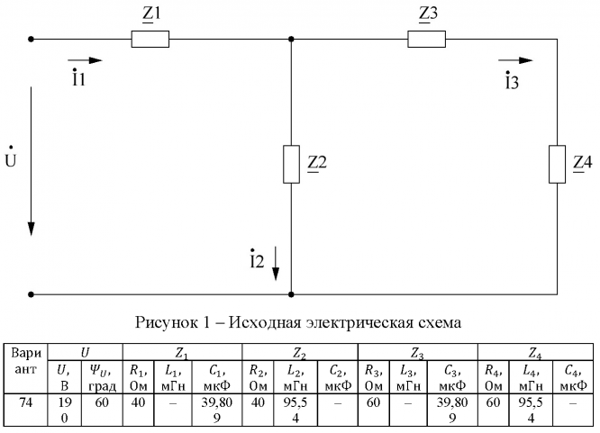 Задание из методических указаний: "Волченсков В.И. ВЫПОЛНЕНИЕ ДОМАШНЕГО ЗАДАНИЯ №2 ПО КУРСУ "ЭЛЕКТРОТЕХНИКА И ЭЛЕКТРОНИКА" (ТЕМА "РАСЧЕТ ЛИНЕЙНЫХ ЦЕПЕЙ СИНУСОИДАЛЬНОГО ТОКА")" - Москва, 2011.