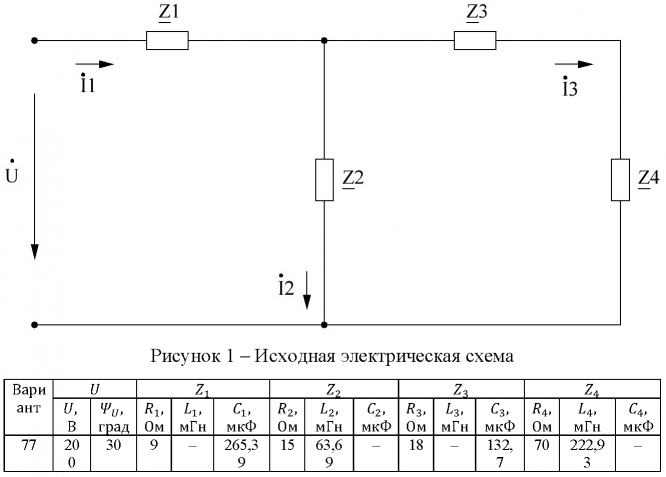 Задание из методических указаний: "Волченсков В.И. ВЫПОЛНЕНИЕ ДОМАШНЕГО ЗАДАНИЯ №2 ПО КУРСУ "ЭЛЕКТРОТЕХНИКА И ЭЛЕКТРОНИКА" (ТЕМА "РАСЧЕТ ЛИНЕЙНЫХ ЦЕПЕЙ СИНУСОИДАЛЬНОГО ТОКА")" - Москва, 2011.