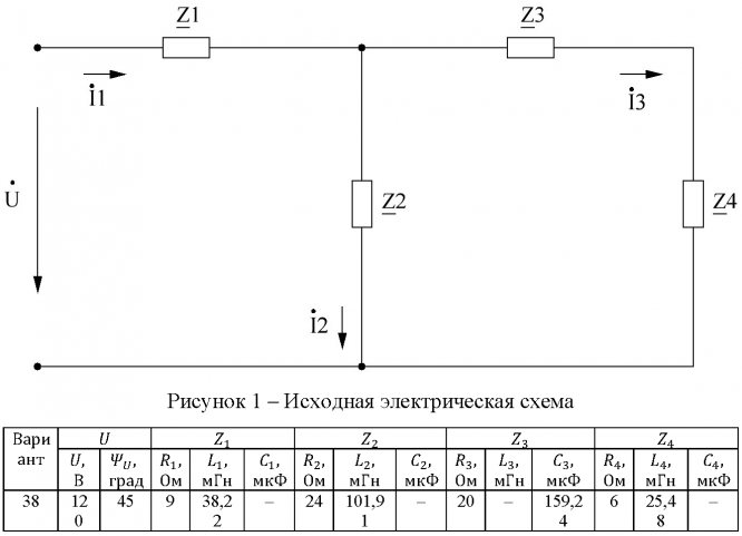 Задание из методических указаний: "Волченсков В.И. ВЫПОЛНЕНИЕ ДОМАШНЕГО ЗАДАНИЯ №2 ПО КУРСУ "ЭЛЕКТРОТЕХНИКА И ЭЛЕКТРОНИКА" (ТЕМА "РАСЧЕТ ЛИНЕЙНЫХ ЦЕПЕЙ СИНУСОИДАЛЬНОГО ТОКА")" - Москва, 2011.