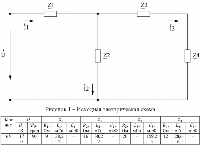 Задание из методических указаний: "Волченсков В.И. ВЫПОЛНЕНИЕ ДОМАШНЕГО ЗАДАНИЯ №2 ПО КУРСУ "ЭЛЕКТРОТЕХНИКА И ЭЛЕКТРОНИКА" (ТЕМА "РАСЧЕТ ЛИНЕЙНЫХ ЦЕПЕЙ СИНУСОИДАЛЬНОГО ТОКА")" - Москва, 2011.