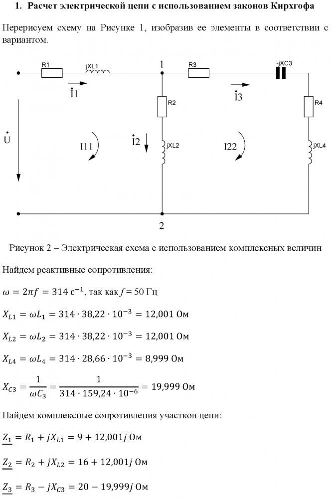 1. В соответствии с номером варианта домашнего задания нарисовать подробную схему с указанием отдельных элементов (R, L, С) и выписать исходные числовые данные из табл. П1, приведенной в приложении 1 методических указаний.2. Используя символический метод, для исходной схемы (рис. П1 приложения 2) составить систему уравнений по законам Кирхгофа, подставить в нее числовые значения, соответствующие рассматриваемому варианту задания, и, используя компьютер, определить все токи в ветвях схемы.