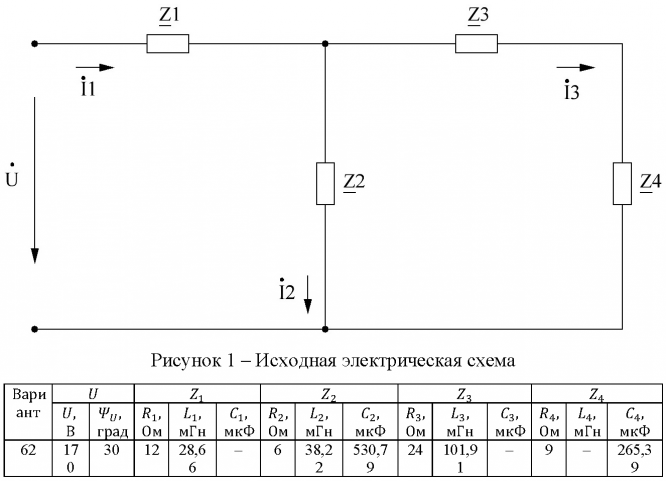 Задание из методических указаний: "Волченсков В.И. ВЫПОЛНЕНИЕ ДОМАШНЕГО ЗАДАНИЯ №2 ПО КУРСУ "ЭЛЕКТРОТЕХНИКА И ЭЛЕКТРОНИКА" (ТЕМА "РАСЧЕТ ЛИНЕЙНЫХ ЦЕПЕЙ СИНУСОИДАЛЬНОГО ТОКА")" - Москва, 2011.