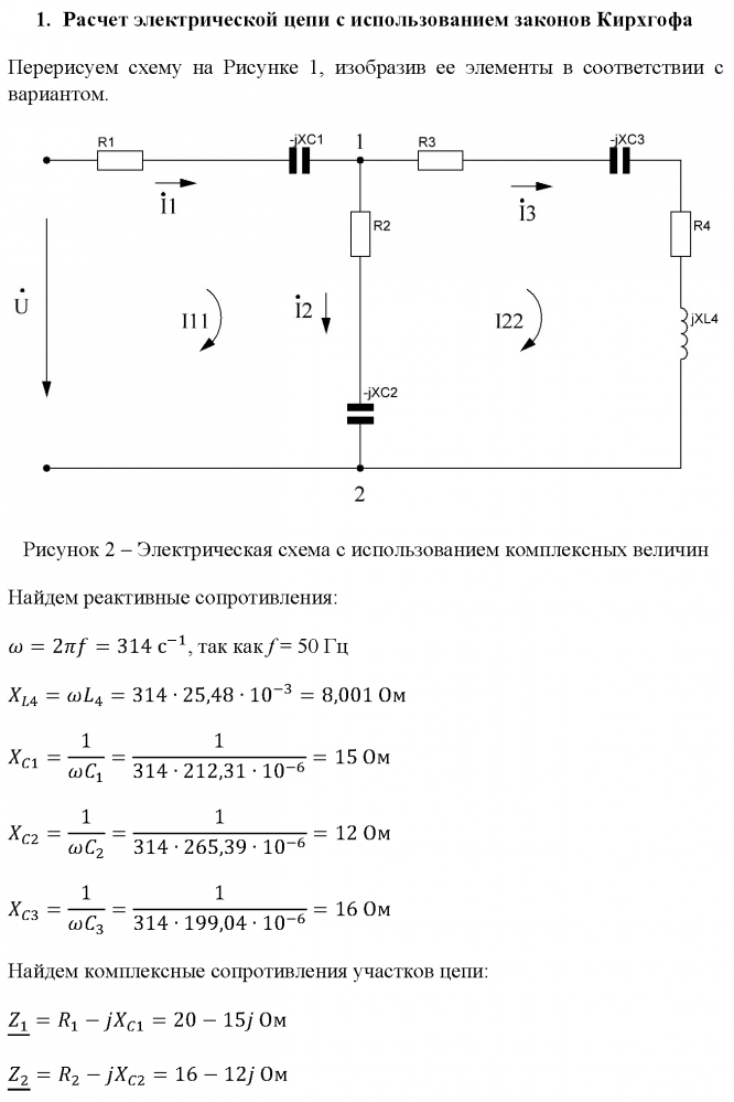 1. В соответствии с номером варианта домашнего задания нарисовать подробную схему с указанием отдельных элементов (R, L, С) и выписать исходные числовые данные из табл. П1, приведенной в приложении 1 методических указаний.2. Используя символический метод, для исходной схемы (рис. П1 приложения 2) составить систему уравнений по законам Кирхгофа, подставить в нее числовые значения, соответствующие рассматриваемому варианту задания, и, используя компьютер, определить все токи в ветвях схемы.