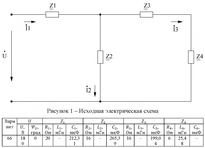 Задание из методических указаний: "Волченсков В.И. ВЫПОЛНЕНИЕ ДОМАШНЕГО ЗАДАНИЯ №2 ПО КУРСУ "ЭЛЕКТРОТЕХНИКА И ЭЛЕКТРОНИКА" (ТЕМА "РАСЧЕТ ЛИНЕЙНЫХ ЦЕПЕЙ СИНУСОИДАЛЬНОГО ТОКА")" - Москва, 2011.