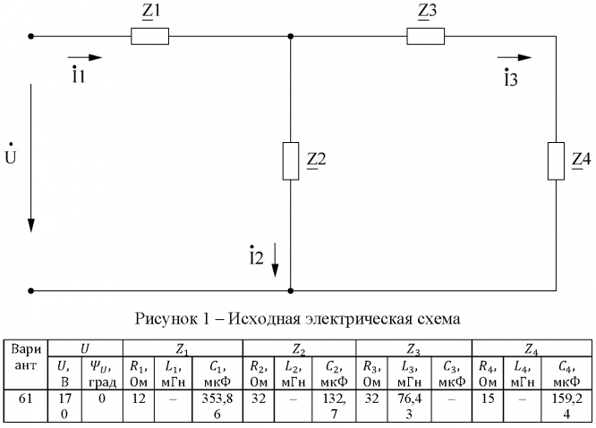 Задание из методических указаний: "Волченсков В.И. ВЫПОЛНЕНИЕ ДОМАШНЕГО ЗАДАНИЯ №2 ПО КУРСУ "ЭЛЕКТРОТЕХНИКА И ЭЛЕКТРОНИКА" (ТЕМА "РАСЧЕТ ЛИНЕЙНЫХ ЦЕПЕЙ СИНУСОИДАЛЬНОГО ТОКА")" - Москва, 2011.