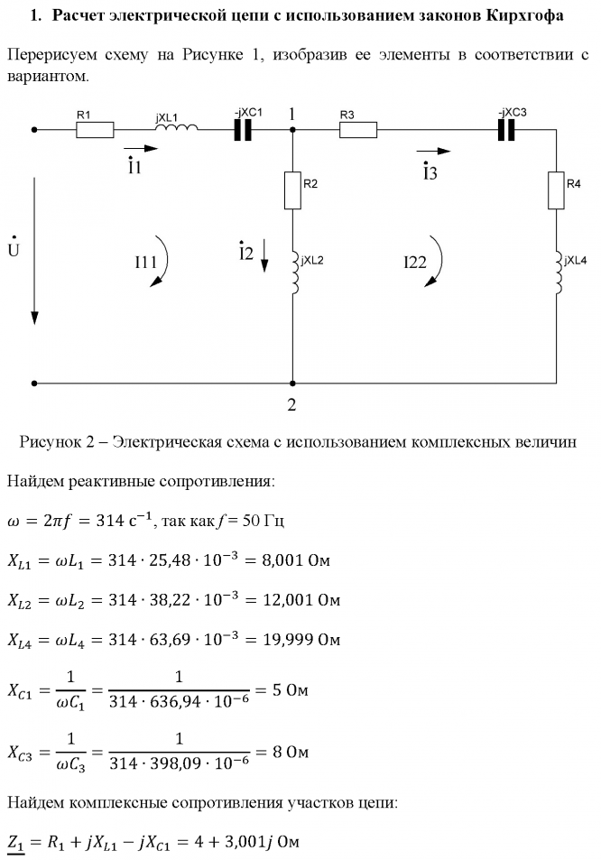 ДЗ 2: Расчет линейных цепей синусоидального тока вариант 1