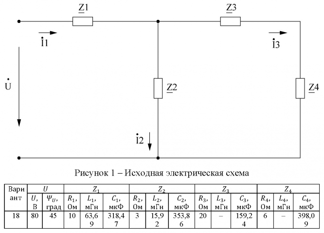 Задание из методических указаний: "Волченсков В.И. ВЫПОЛНЕНИЕ ДОМАШНЕГО ЗАДАНИЯ №2 ПО КУРСУ "ЭЛЕКТРОТЕХНИКА И ЭЛЕКТРОНИКА" (ТЕМА "РАСЧЕТ ЛИНЕЙНЫХ ЦЕПЕЙ СИНУСОИДАЛЬНОГО ТОКА")" - Москва, 2011.