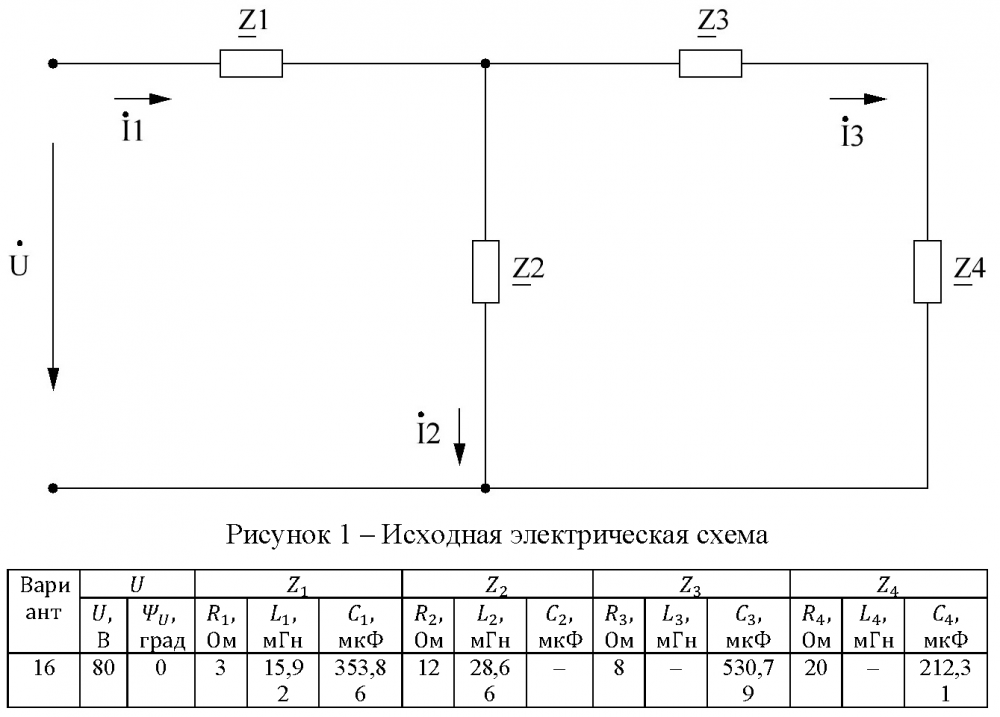 Задание из методических указаний: "Волченсков В.И. ВЫПОЛНЕНИЕ ДОМАШНЕГО ЗАДАНИЯ №2 ПО КУРСУ "ЭЛЕКТРОТЕХНИКА И ЭЛЕКТРОНИКА" (ТЕМА "РАСЧЕТ ЛИНЕЙНЫХ ЦЕПЕЙ СИНУСОИДАЛЬНОГО ТОКА")" - Москва, 2011.
