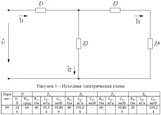 Задание из методических указаний: "Волченсков В.И. ВЫПОЛНЕНИЕ ДОМАШНЕГО ЗАДАНИЯ №2 ПО КУРСУ "ЭЛЕКТРОТЕХНИКА И ЭЛЕКТРОНИКА" (ТЕМА "РАСЧЕТ ЛИНЕЙНЫХ ЦЕПЕЙ СИНУСОИДАЛЬНОГО ТОКА")" - Москва, 2011.