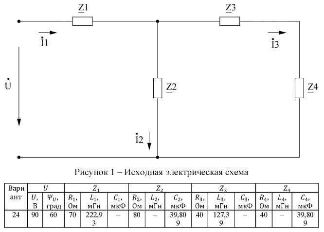 Задание из методических указаний: "Волченсков В.И. ВЫПОЛНЕНИЕ ДОМАШНЕГО ЗАДАНИЯ №2 ПО КУРСУ "ЭЛЕКТРОТЕХНИКА И ЭЛЕКТРОНИКА" (ТЕМА "РАСЧЕТ ЛИНЕЙНЫХ ЦЕПЕЙ СИНУСОИДАЛЬНОГО ТОКА")" - Москва, 2011.