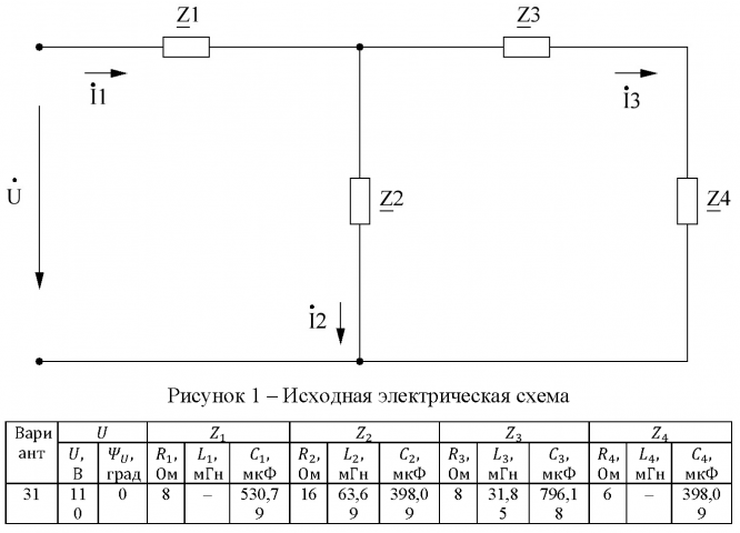 Задание из методических указаний: "Волченсков В.И. ВЫПОЛНЕНИЕ ДОМАШНЕГО ЗАДАНИЯ №2 ПО КУРСУ "ЭЛЕКТРОТЕХНИКА И ЭЛЕКТРОНИКА" (ТЕМА "РАСЧЕТ ЛИНЕЙНЫХ ЦЕПЕЙ СИНУСОИДАЛЬНОГО ТОКА")" - Москва, 2011.