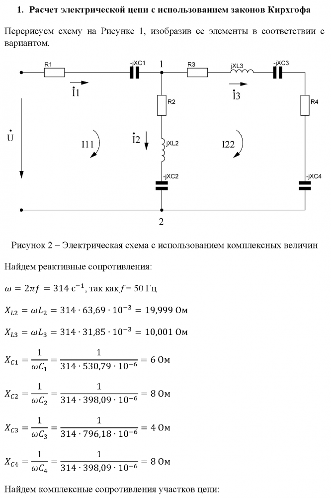 1. В соответствии с номером варианта домашнего задания нарисовать подробную схему с указанием отдельных элементов (R, L, С) и выписать исходные числовые данные из табл. П1, приведенной в приложении 1 методических указаний.2. Используя символический метод, для исходной схемы (рис. П1 приложения 2) составить систему уравнений по законам Кирхгофа, подставить в нее числовые значения, соответствующие рассматриваемому варианту задания, и, используя компьютер, определить все токи в ветвях схемы.