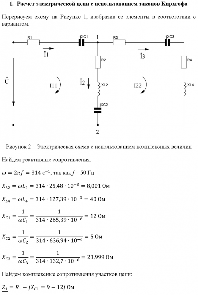 1. В соответствии с номером варианта домашнего задания нарисовать подробную схему с указанием отдельных элементов (R, L, С) и выписать исходные числовые данные из табл. П1, приведенной в приложении 1 методических указаний.2. Используя символический метод, для исходной схемы (рис. П1 приложения 2) составить систему уравнений по законам Кирхгофа, подставить в нее числовые значения, соответствующие рассматриваемому варианту задания, и, используя компьютер, определить все токи в ветвях схемы.