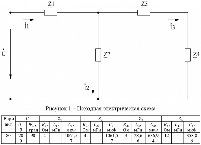 Задание из методических указаний: "Волченсков В.И. ВЫПОЛНЕНИЕ ДОМАШНЕГО ЗАДАНИЯ №2 ПО КУРСУ "ЭЛЕКТРОТЕХНИКА И ЭЛЕКТРОНИКА" (ТЕМА "РАСЧЕТ ЛИНЕЙНЫХ ЦЕПЕЙ СИНУСОИДАЛЬНОГО ТОКА")" - Москва, 2011.