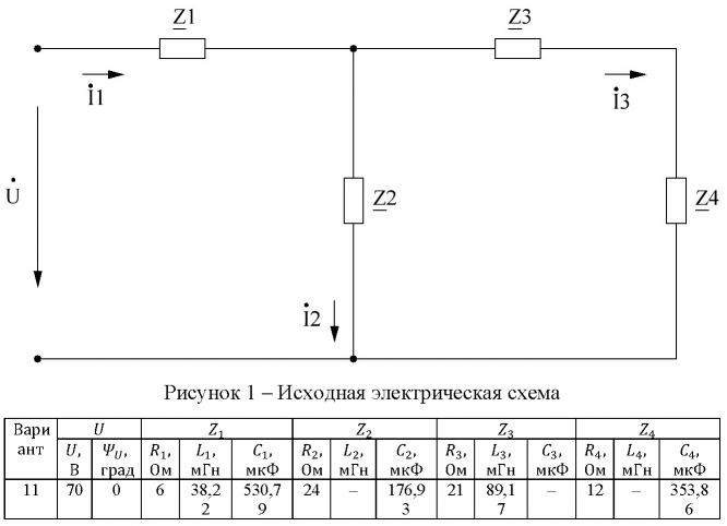 Задание из методических указаний: "Волченсков В.И. ВЫПОЛНЕНИЕ ДОМАШНЕГО ЗАДАНИЯ №2 ПО КУРСУ "ЭЛЕКТРОТЕХНИКА И ЭЛЕКТРОНИКА" (ТЕМА "РАСЧЕТ ЛИНЕЙНЫХ ЦЕПЕЙ СИНУСОИДАЛЬНОГО ТОКА")" - Москва, 2011.