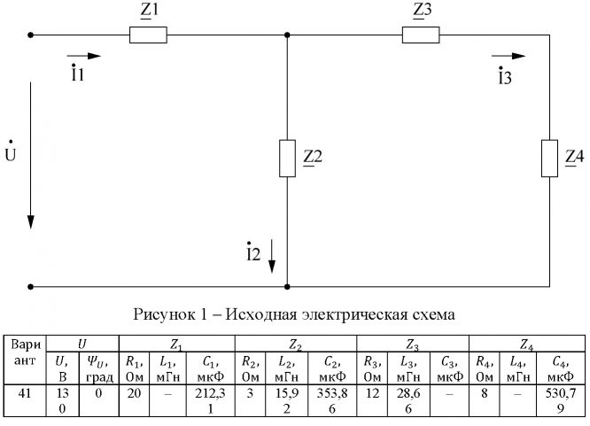 Задание из методических указаний: "Волченсков В.И. ВЫПОЛНЕНИЕ ДОМАШНЕГО ЗАДАНИЯ №2 ПО КУРСУ "ЭЛЕКТРОТЕХНИКА И ЭЛЕКТРОНИКА" (ТЕМА "РАСЧЕТ ЛИНЕЙНЫХ ЦЕПЕЙ СИНУСОИДАЛЬНОГО ТОКА")" - Москва, 2011.