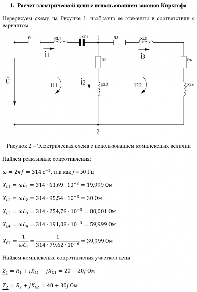 1. В соответствии с номером варианта домашнего задания нарисовать подробную схему с указанием отдельных элементов (R, L, С) и выписать исходные числовые данные из табл. П1, приведенной в приложении 1 методических указаний.2. Используя символический метод, для исходной схемы (рис. П1 приложения 2) составить систему уравнений по законам Кирхгофа, подставить в нее числовые значения, соответствующие рассматриваемому варианту задания, и, используя компьютер, определить все токи в ветвях схемы.