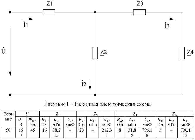 Задание из методических указаний: "Волченсков В.И. ВЫПОЛНЕНИЕ ДОМАШНЕГО ЗАДАНИЯ №2 ПО КУРСУ "ЭЛЕКТРОТЕХНИКА И ЭЛЕКТРОНИКА" (ТЕМА "РАСЧЕТ ЛИНЕЙНЫХ ЦЕПЕЙ СИНУСОИДАЛЬНОГО ТОКА")" - Москва, 2011.