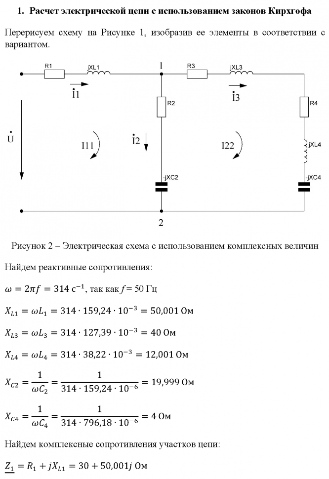 1. В соответствии с номером варианта домашнего задания нарисовать подробную схему с указанием отдельных элементов (R, L, С) и выписать исходные числовые данные из табл. П1, приведенной в приложении 1 методических указаний.2. Используя символический метод, для исходной схемы (рис. П1 приложения 2) составить систему уравнений по законам Кирхгофа, подставить в нее числовые значения, соответствующие рассматриваемому варианту задания, и, используя компьютер, определить все токи в ветвях схемы.