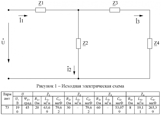 Задание из методических указаний: "Волченсков В.И. ВЫПОЛНЕНИЕ ДОМАШНЕГО ЗАДАНИЯ №2 ПО КУРСУ "ЭЛЕКТРОТЕХНИКА И ЭЛЕКТРОНИКА" (ТЕМА "РАСЧЕТ ЛИНЕЙНЫХ ЦЕПЕЙ СИНУСОИДАЛЬНОГО ТОКА")" - Москва, 2011.