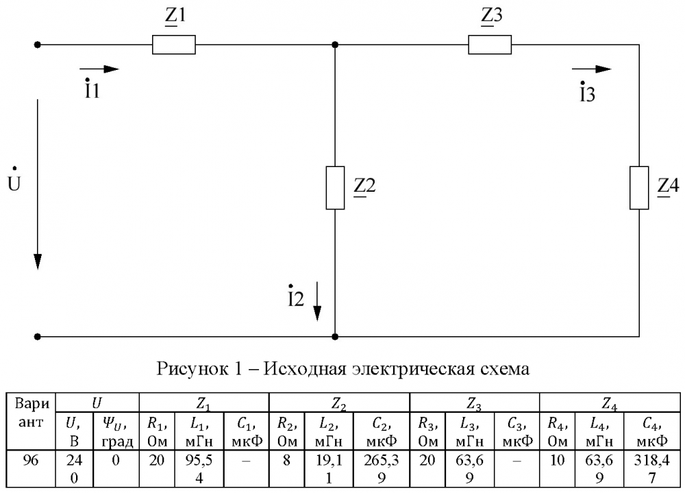 Задание из методических указаний: "Волченсков В.И. ВЫПОЛНЕНИЕ ДОМАШНЕГО ЗАДАНИЯ №2 ПО КУРСУ "ЭЛЕКТРОТЕХНИКА И ЭЛЕКТРОНИКА" (ТЕМА "РАСЧЕТ ЛИНЕЙНЫХ ЦЕПЕЙ СИНУСОИДАЛЬНОГО ТОКА")" - Москва, 2011.