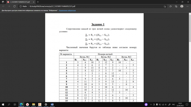 На основе представленных исходных данных необходимо: начертить схему замещения электрической цепи; рассчитать действующие значения токов во всех ветвях цепи; рассчитать активную, реактивную и полную мощности ветвей и всей цепи; построить векторную диаграмму, изобразив на ней токи во всех ветвях, включая разветвлённый участок цепи