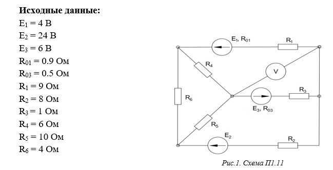 ДЗ 1: ДЗ 1. Вариант 11. Расчет линейных цепей постоянного тока вариант 11