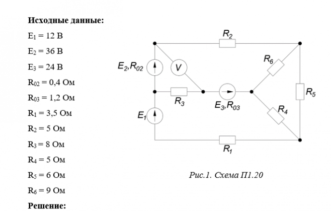 ДЗ 1: ДЗ 1. Вариант 20. Расчет линейных цепей постоянного тока вариант 20