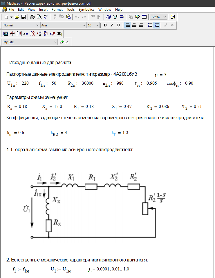ДЗ 1: ДЗ №1 - Расчет характеристик трехфазного асинхронного двигателя (Выполнено в MathCAD- универсальное для всех вариантов)