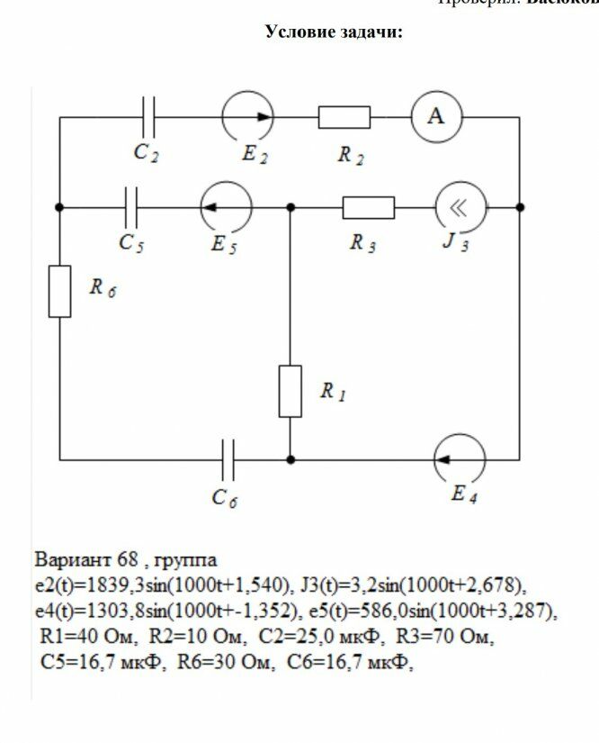 ДЗ 1: Методы анализа линейных разветвлённых электрических цепей при синусоидальных воздействиях вариант 68